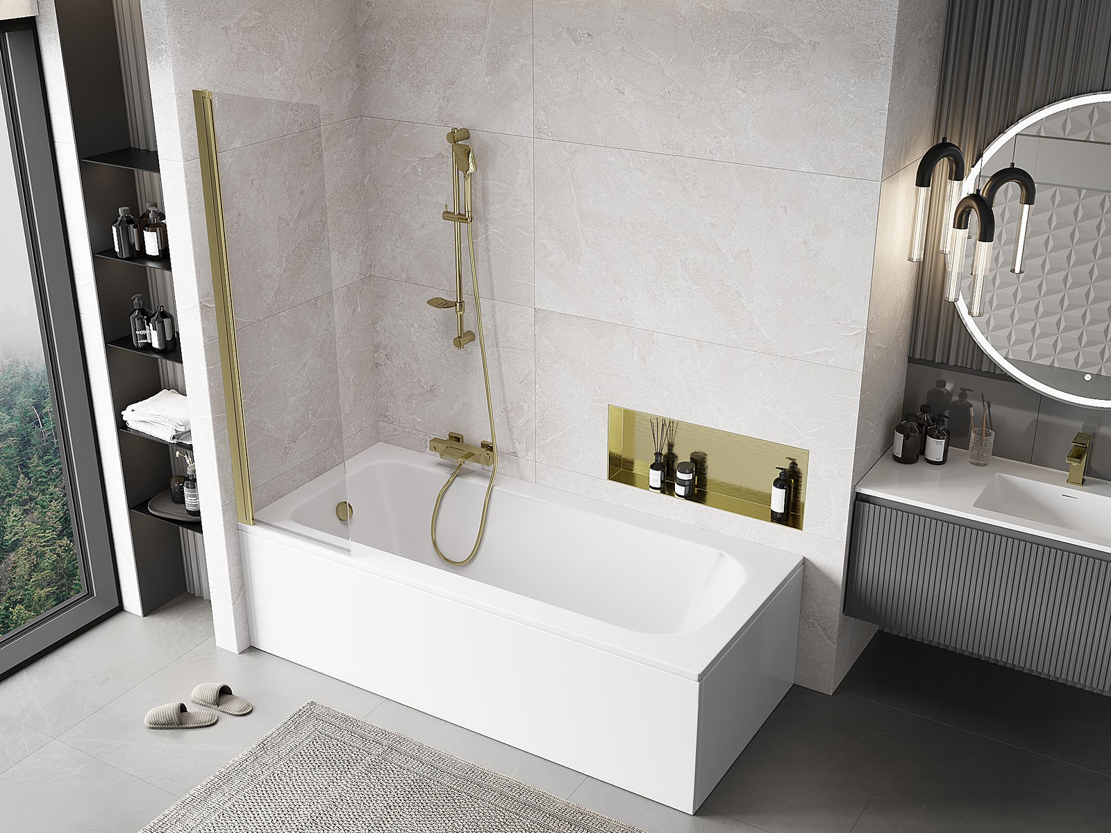 Mexen Mist 1-krilni kopalniški zaslon 50 x 150 cm, prozoren, zlat - 8A9-050-001-50-00