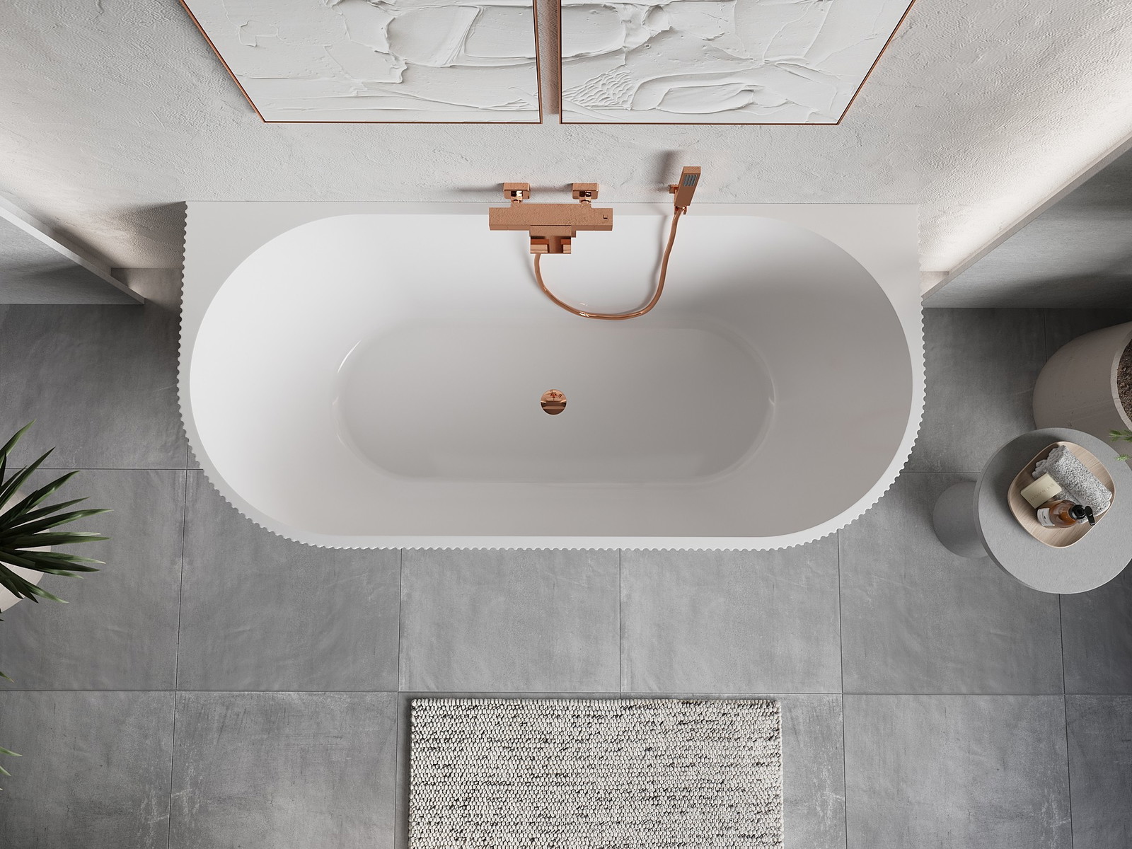 Mexen Oris samostoječa kopalna kad ob steni rebrasta 170 x 80 cm, bela, preliv rožnato zlato - 52871708000-60