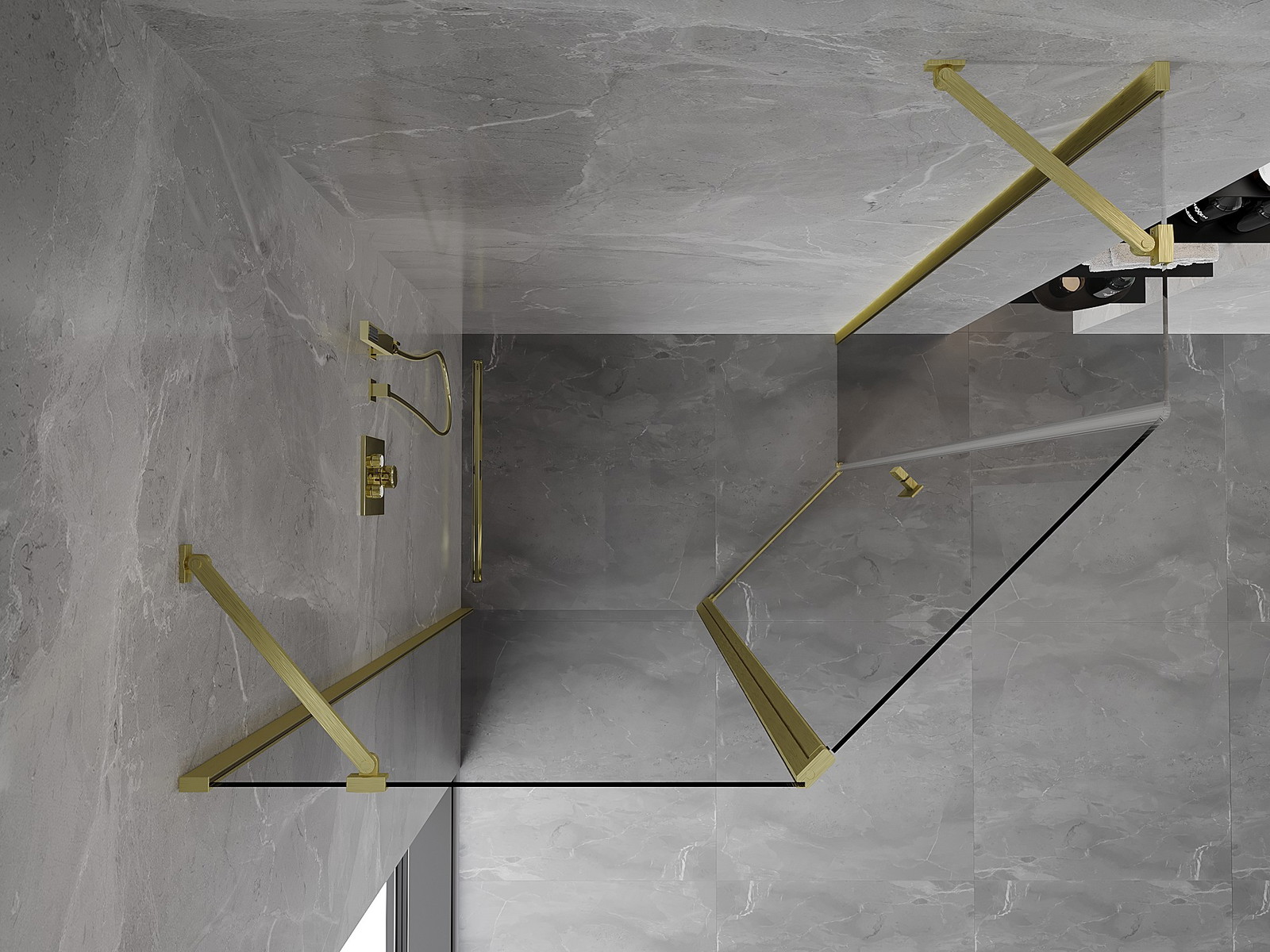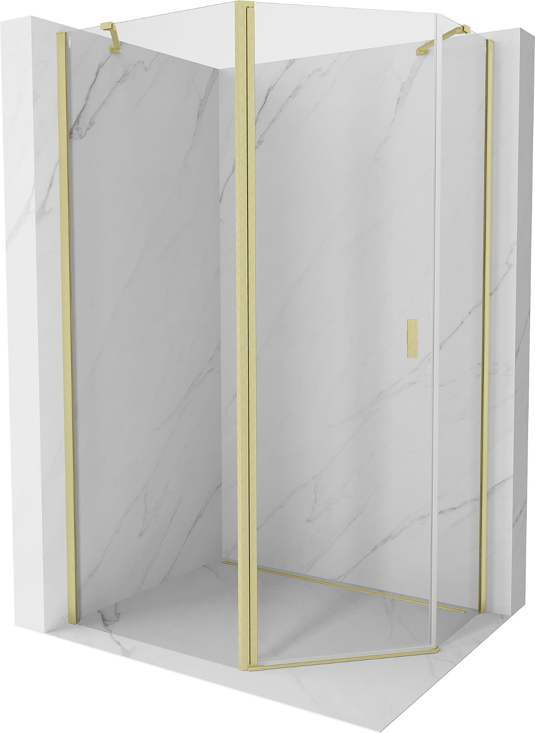 Mexen Mist asimetrična nagibna petkotna pršna kabina 100 x 80 cm, prosojna, z brušenim zlatom - 8A8-100-080-55-00