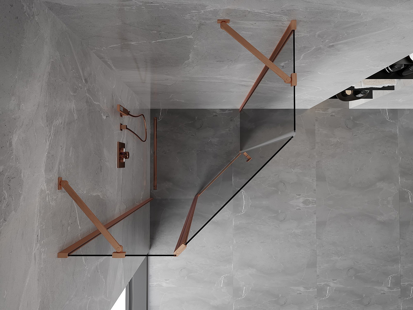 Mexen Mist pentagon tuš kabina z nihajnimi vrati 90 x 90 cm, prozorna, brušeni baker - 8A8-090-090-65-00