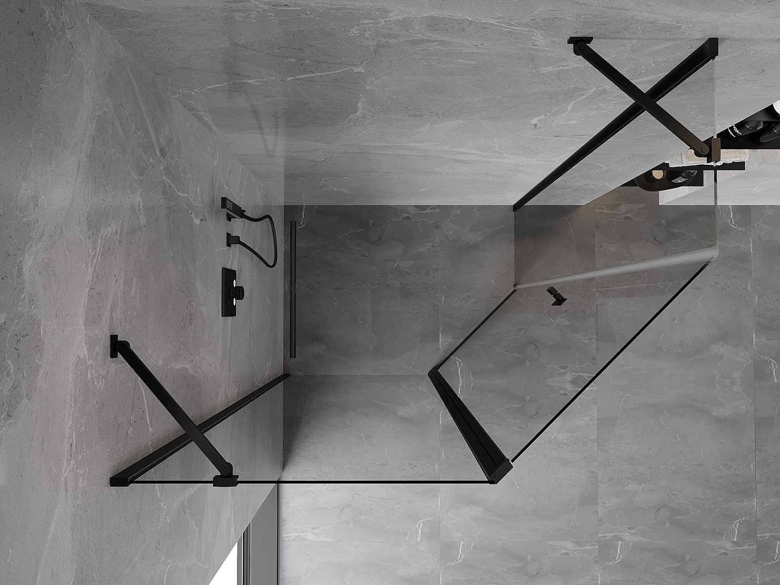 Mexen Mist asimetrična pentagonalna tuš kabina, nihajna, 100 x 80 cm, prozorna, črna - 8A8-100-080-70-00