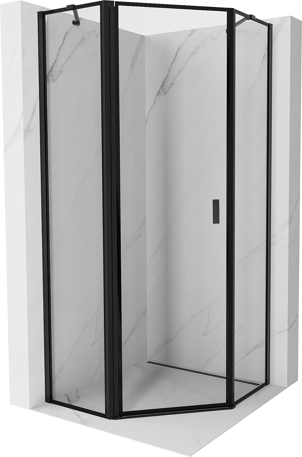 Mexen Mist pentagonalna tuš kabina z levo stranjo 80 x 80 cm, črn okvir, črna - 8A8-080-080-70-70-L