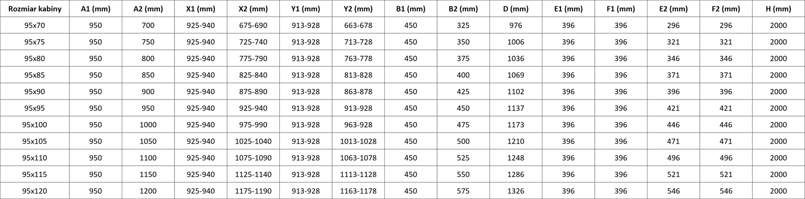 Tuš kabine, vrata in stene so standardno prilagojene za montažo na tuš kadi določenih dimenzij. Te dimenzije so navedene v imenu ali opisu izdelka. Vendar je treba upoštevati, da se dejanske mere elementov lahko nekoliko razlikujejo od nazivnih vrednosti. V primeru načrtovane montaže neposredno na tla je priporočljivo natančno preveriti zunanje mere in razporeditev elementov v skladu s tehnično risbo.