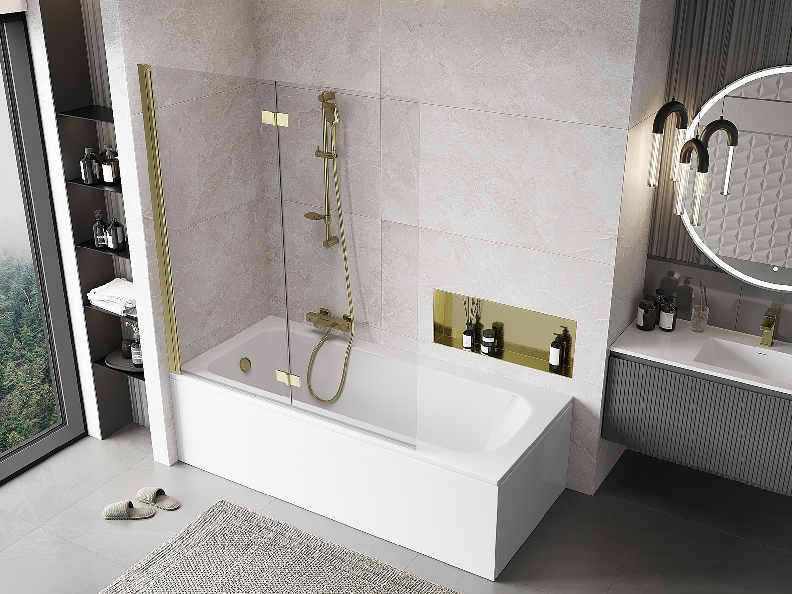 Zaslon izdelan iz dveh kril z možnostjo zlaganja. Takšna rešitev omogoča prihranek prostora v kopalnici in omogoča prosto uporabo preostalega prostora, ko ne uporabljamo kopalne cone.
