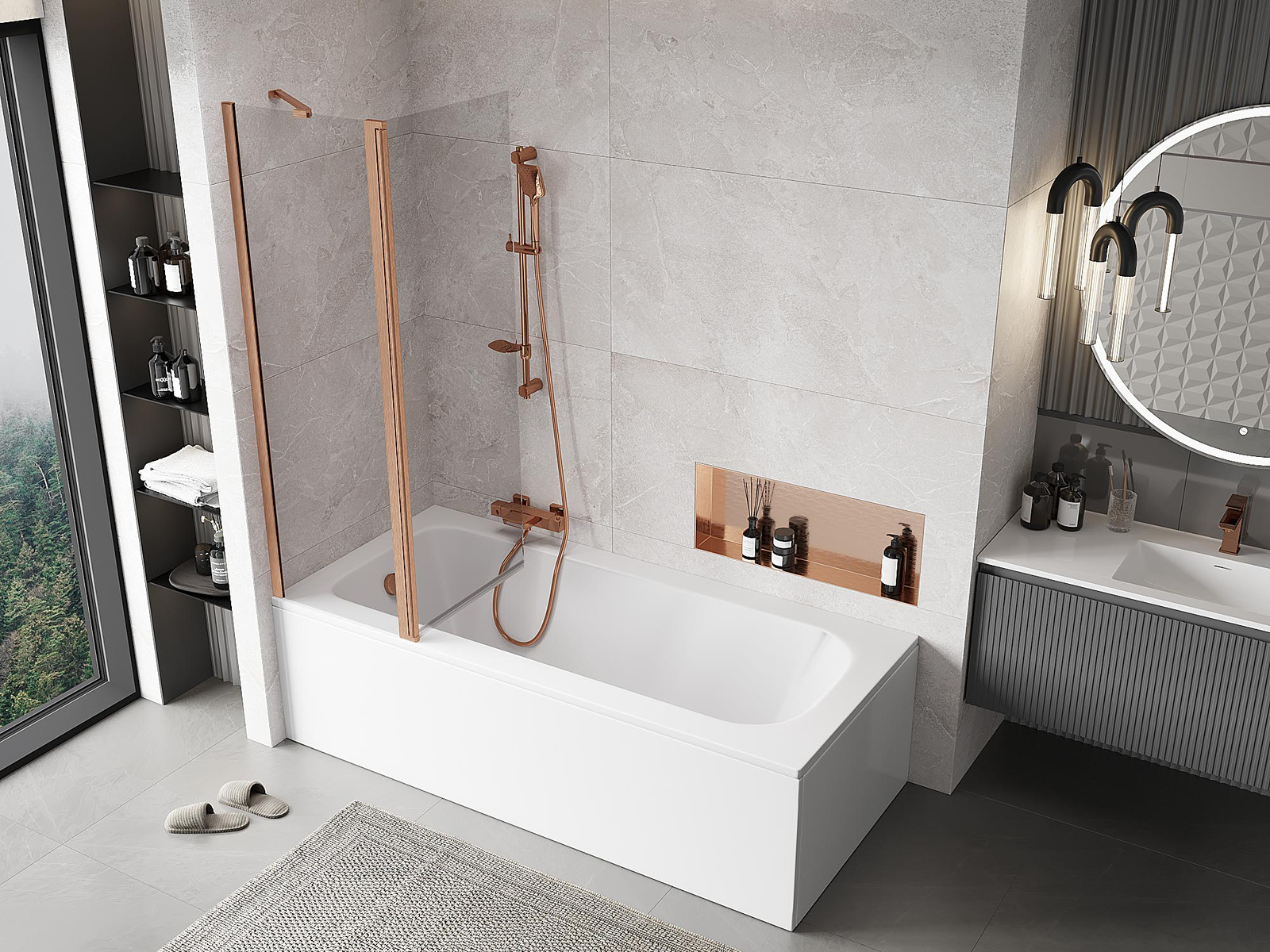 Učinkovita zaščita pred razlivanjem vode med kopanjem. Paravan ima tesnila, ki se popolnoma prilegajo stekleni plošči in robu kadi. Funkcionalna rešitev, ki zagotavlja varnost in enostavno vzdrževanje čistoče.