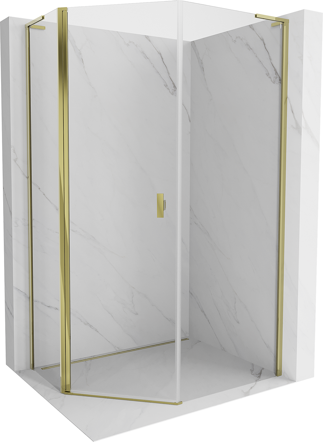Mexen Mist L asimetrična petkotna tuš kabina s tečajnimi vrati 80 x 90 cm, prozorna, zlata - 8A8L-080-090-50-00