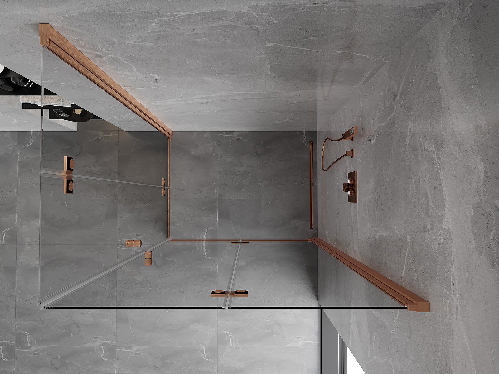 Priročen in udoben ročaj je izdelan iz trpežnega in odpornega kovine. Modna oblika v kombinaciji z zaključkom, ki ustreza barvi profilov, daje celoti sodoben in stilski videz, poudarjajoč estetiko vsake kopalnice.