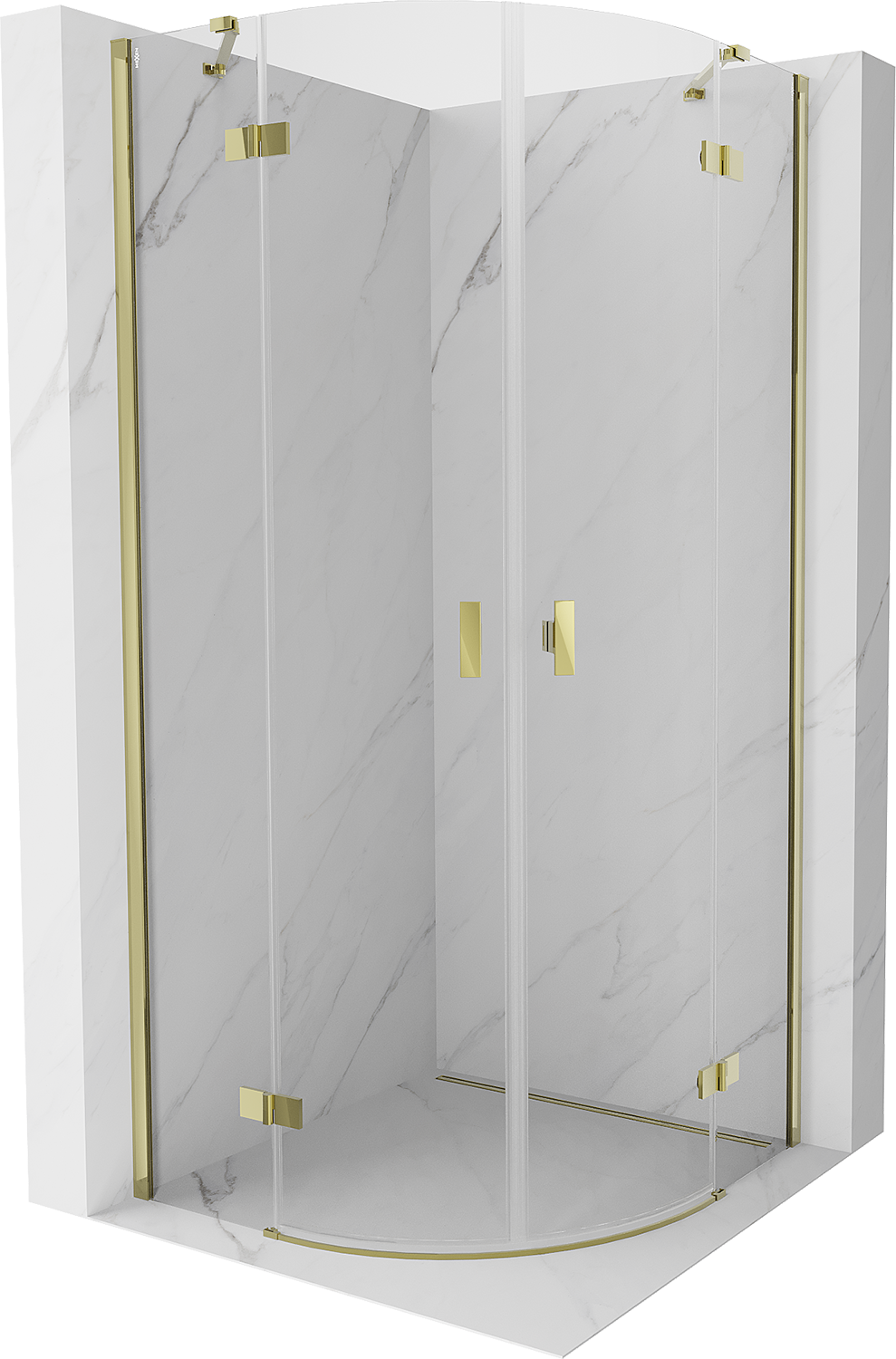 Mexen Mist polkrožna kabina za prhanje z nihajnimi vrati 80 x 80 cm, prozorna, zlata - 8A33-080-080-50-00