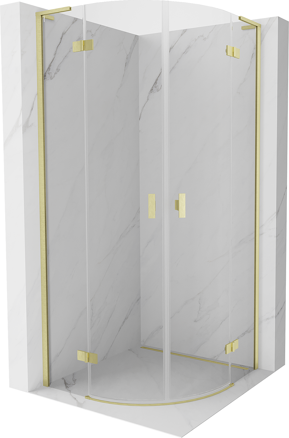 Mexen Mist L okrogla prha kabina, pregibna 90 x 90 cm, prozorna, zlata krtačena - 8A33L-090-090-55-00
