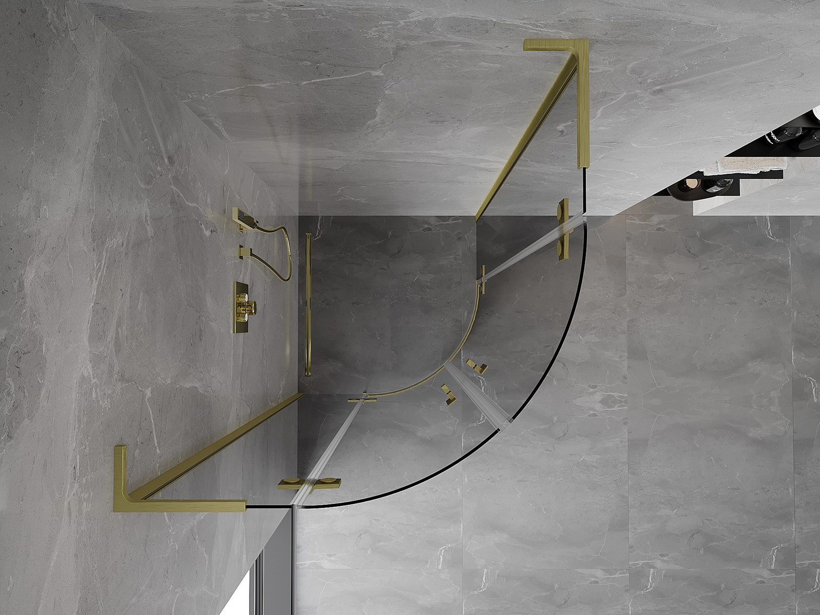 Priročen in udoben ročaj je izdelan iz trpežnega in odpornega kovine. Modna oblika v kombinaciji z zaključkom, ki ustreza barvi profilov, daje celoti sodoben in stilski videz, poudarjajoč estetiko vsake kopalnice.