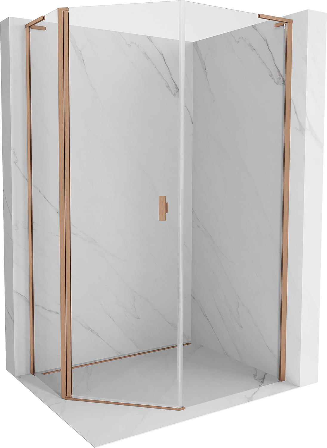 Mexen Mist L kotnično asimetrična pršna kabina 80x90 cm, prozorni, brušeni baker - 8A8L-080-090-65-00