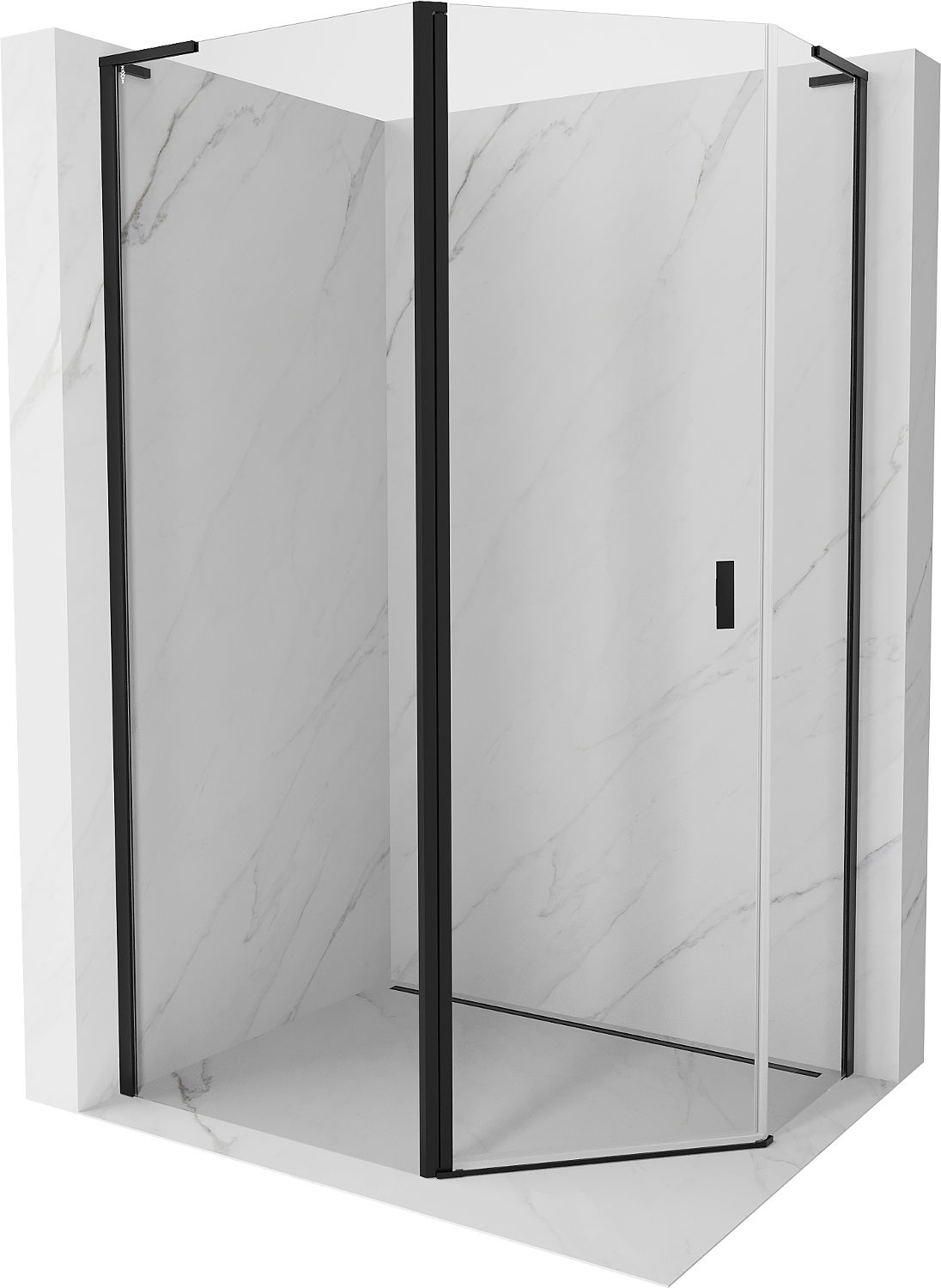 Mexen Mist L asimetrična petkotna pršna kabina s krilnimi vrati 100 x 90 cm, prozorna, črna - 8A8L-100-090-70-00
