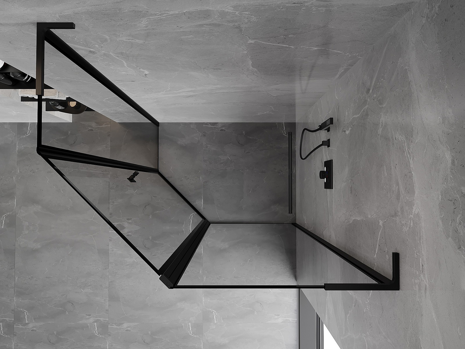 Mexen Mist L asimetrična desna zgibna petkotna tuš kabina 100 x 80 cm, črni okvir, črna - 8A8L-100-080-70-70-P