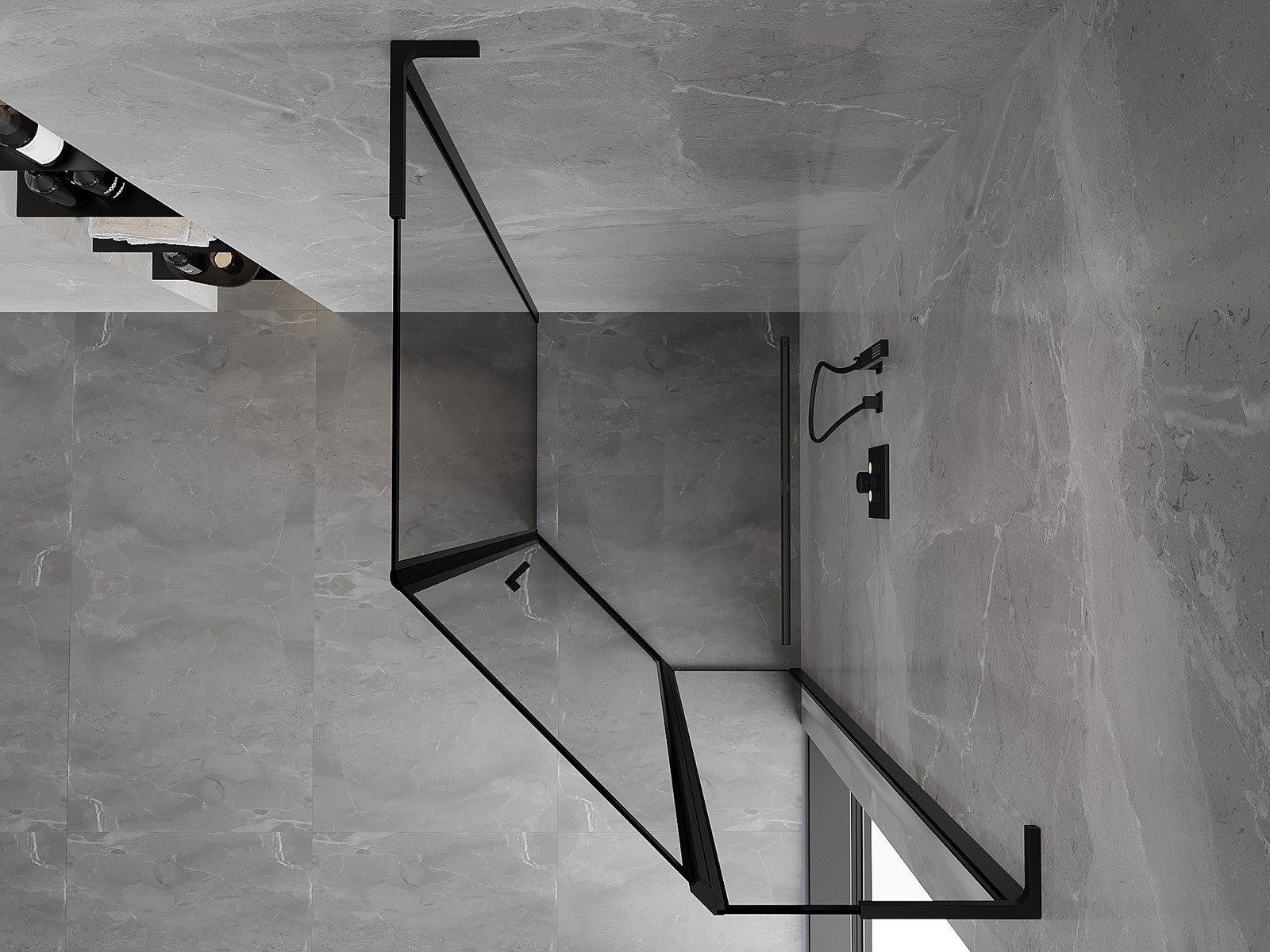 Mexen Mist L asimetrična petkotna pršna kabina, desna stranska vrata 80 x 100 cm, črn okvir, črna - 8A8L-080-100-70-70-P