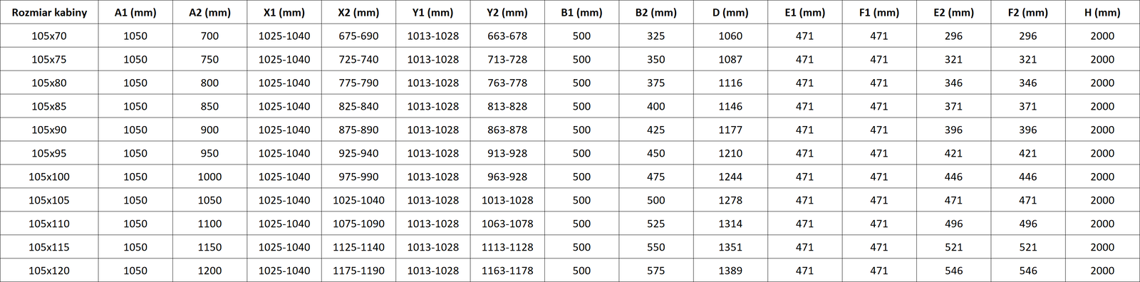 Tuš kabine, vrata in stene so standardno prilagojene za montažo na tuš kadi določenih dimenzij. Te dimenzije so navedene v imenu ali opisu izdelka. Vendar je treba upoštevati, da se dejanske mere elementov lahko nekoliko razlikujejo od nazivnih vrednosti. V primeru načrtovane montaže neposredno na tla je priporočljivo natančno preveriti zunanje mere in razporeditev elementov v skladu s tehnično risbo.