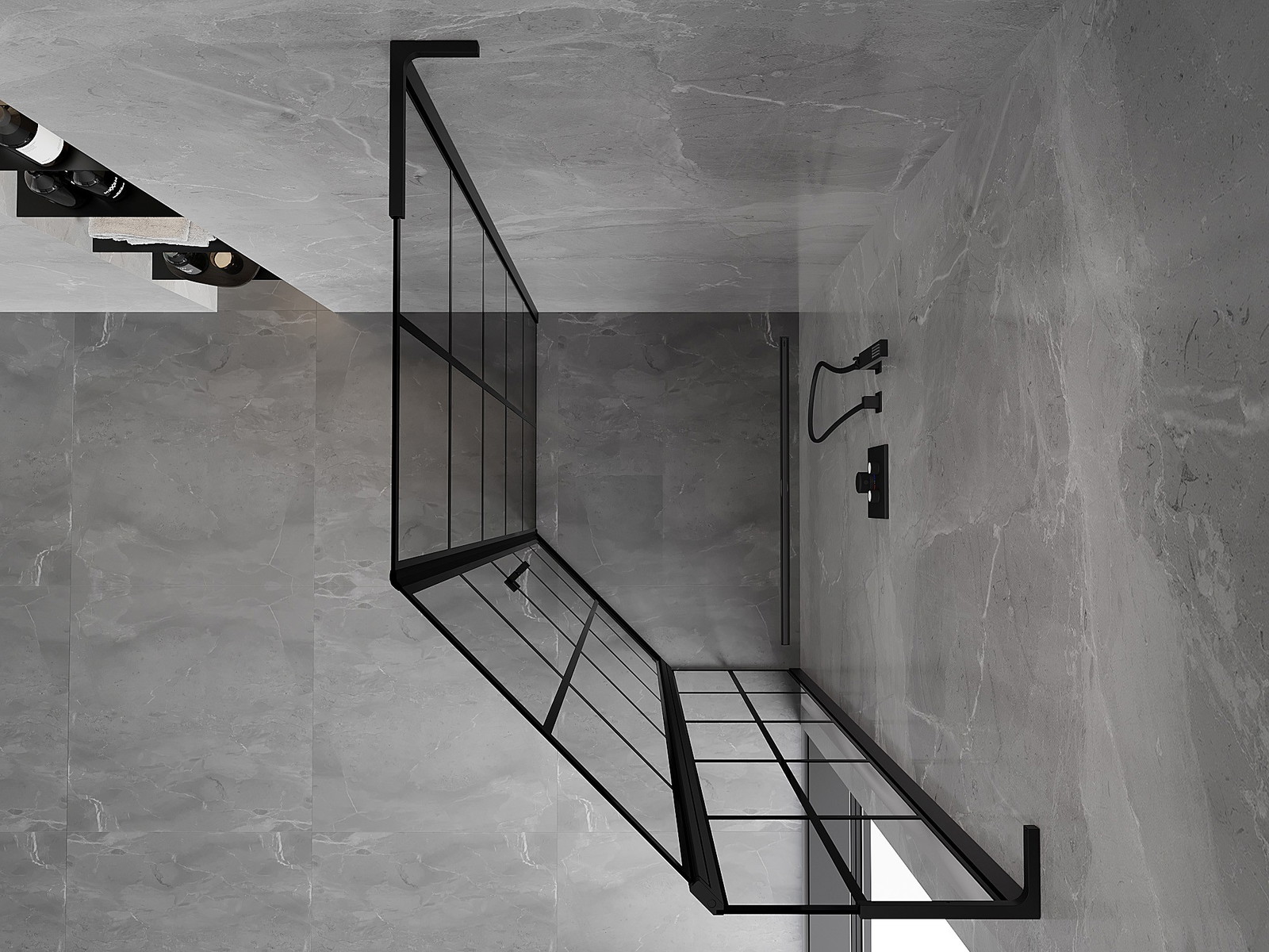 Mexen Mist L asimetrična petskotna tuš kabina s pravimi vrati 80 x 100 cm, črna rešetka, črna - 8A8L-080-100-70-77-P