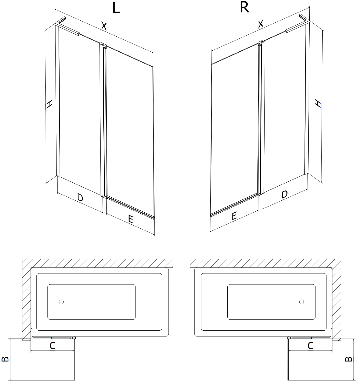Zaslon izdelan iz dveh kril z možnostjo zlaganja. Takšna rešitev omogoča prihranek prostora v kopalnici in omogoča prosto uporabo preostalega prostora, ko ne uporabljamo kopalne cone.