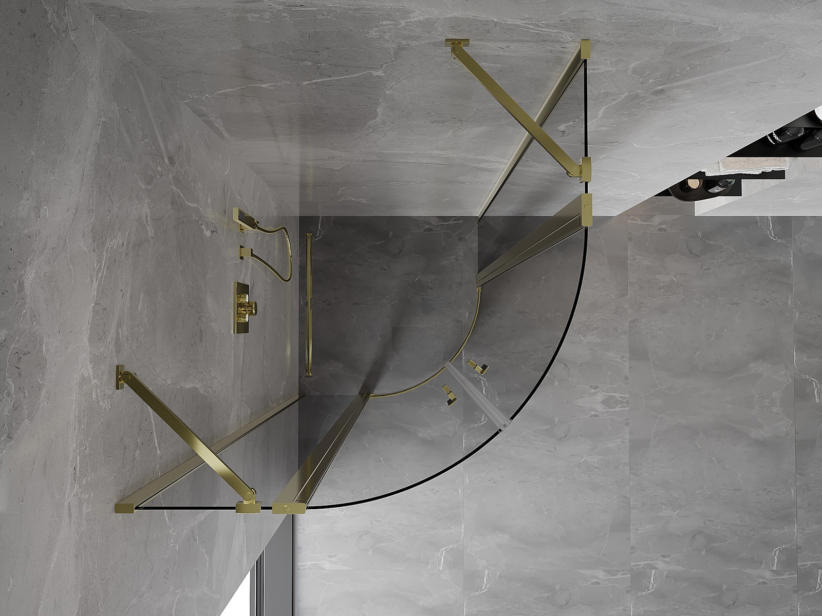 Priročen in udoben ročaj je izdelan iz trpežnega in odpornega kovine. Modna oblika v kombinaciji z zaključkom, ki ustreza barvi profilov, daje celoti sodoben in stilski videz, poudarjajoč estetiko vsake kopalnice.