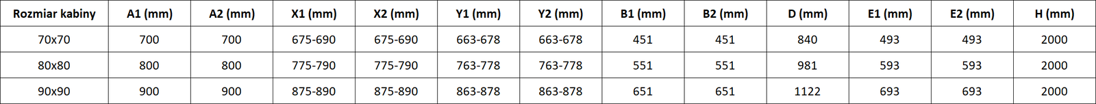 Tuš kabine, vrata in stene so standardno prilagojene za montažo na tuš kadi določenih dimenzij. Te dimenzije so navedene v imenu ali opisu izdelka. Vendar je treba upoštevati, da se dejanske mere elementov lahko nekoliko razlikujejo od nazivnih vrednosti. V primeru načrtovane montaže neposredno na tla je priporočljivo natančno preveriti zunanje mere in razporeditev elementov v skladu s tehnično risbo.