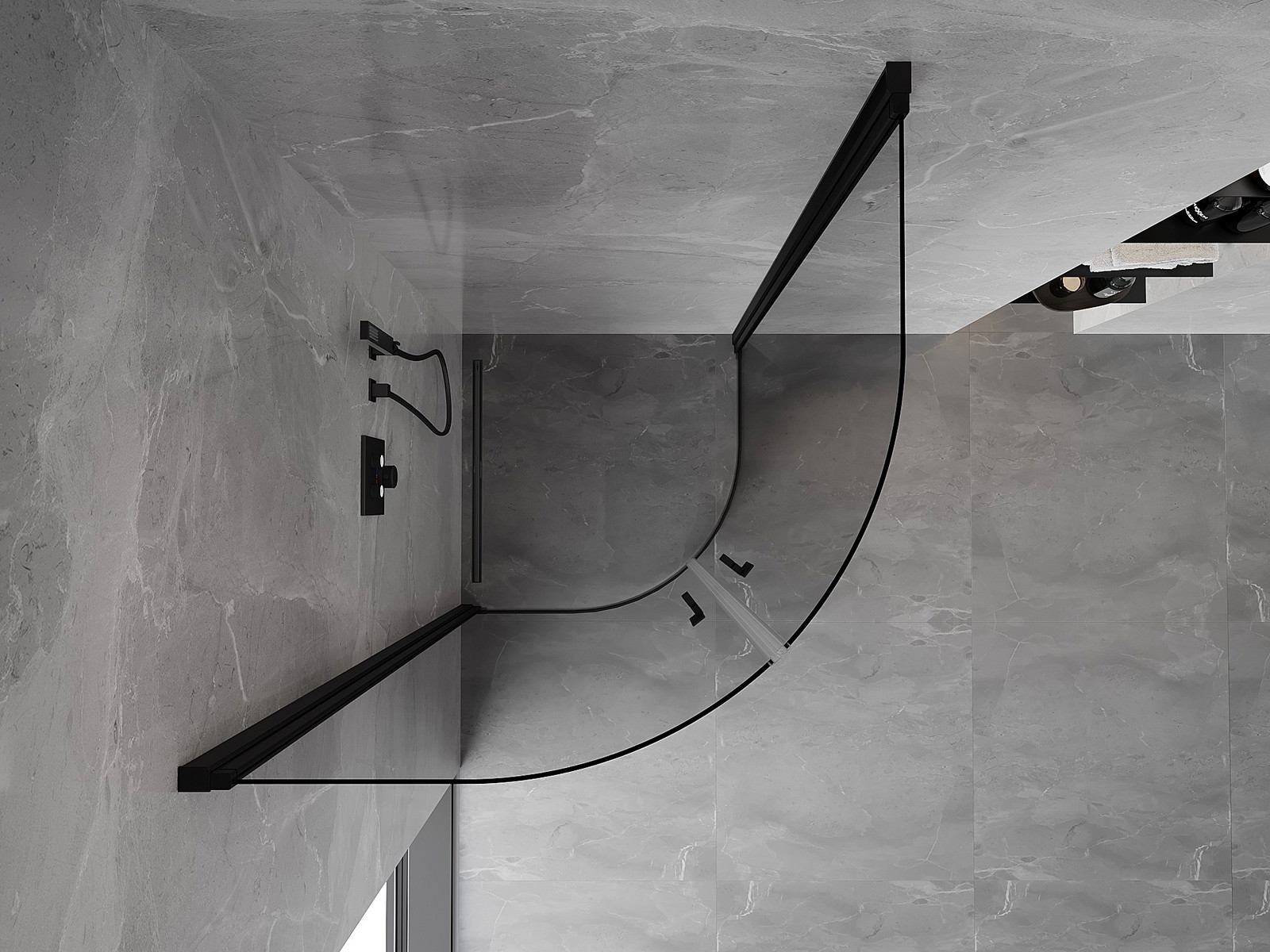 Priročen in udoben ročaj je izdelan iz trpežnega in odpornega kovine. Modna oblika v kombinaciji z zaključkom, ki ustreza barvi profilov, daje celoti sodoben in stilski videz, poudarjajoč estetiko vsake kopalnice.