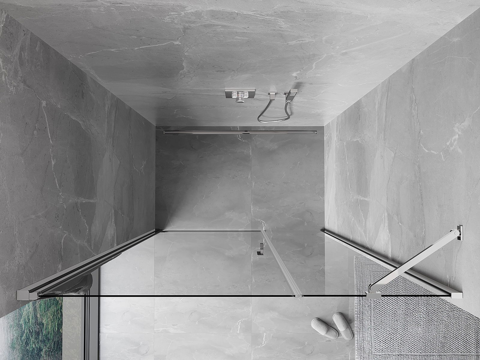 Priročen in udoben ročaj je izdelan iz trpežnega in odpornega kovine. Modna oblika v kombinaciji z zaključkom, ki ustreza barvi profilov, daje celoti sodoben in stilski videz, poudarjajoč estetiko vsake kopalnice.