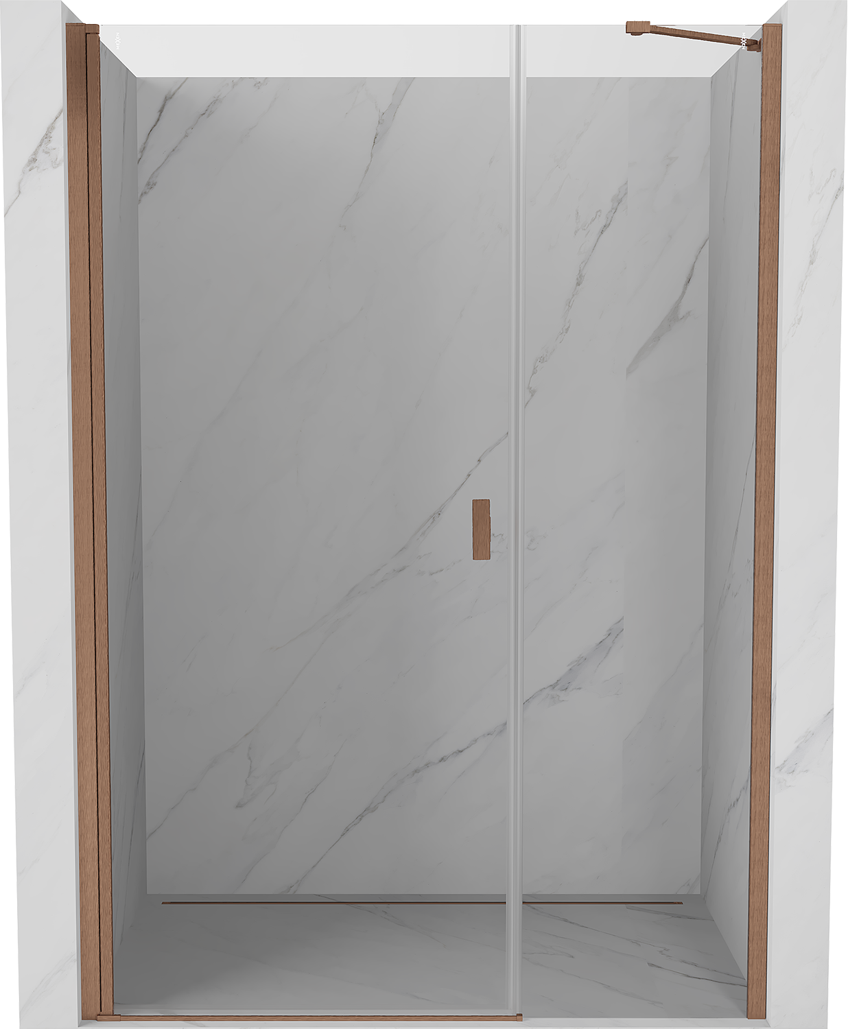 Mexen Mist-B nihajna tuš vrata 115 cm, prozorna, brušeni baker - 8A2-115-001-65-00