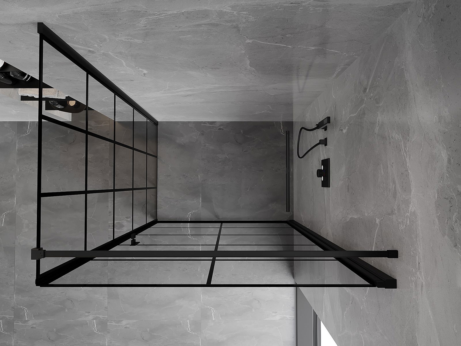Priročen in udoben ročaj je izdelan iz trpežnega in odpornega kovine. Modna oblika v kombinaciji z zaključkom, ki ustreza barvi profilov, daje celoti sodoben in stilski videz, poudarjajoč estetiko vsake kopalnice.
