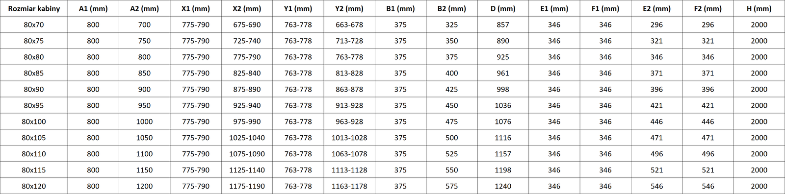 Tuš kabine, vrata in stene so standardno prilagojene za montažo na tuš kadi določenih dimenzij. Te dimenzije so navedene v imenu ali opisu izdelka. Vendar je treba upoštevati, da se dejanske mere elementov lahko nekoliko razlikujejo od nazivnih vrednosti. V primeru načrtovane montaže neposredno na tla je priporočljivo natančno preveriti zunanje mere in razporeditev elementov v skladu s tehnično risbo.