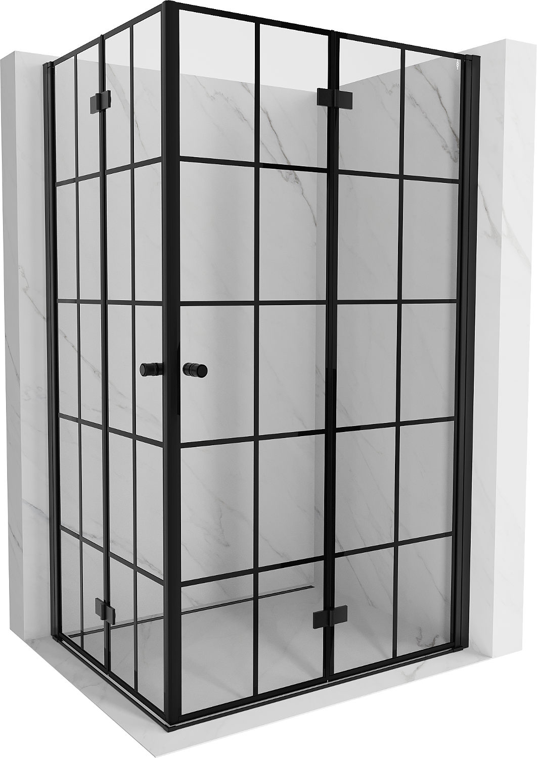 Mexen Mist-F Duo zložena prha z desnim krilom 110 x 120 cm, črna mreža, črna - 8A6-110L-120P-70-77