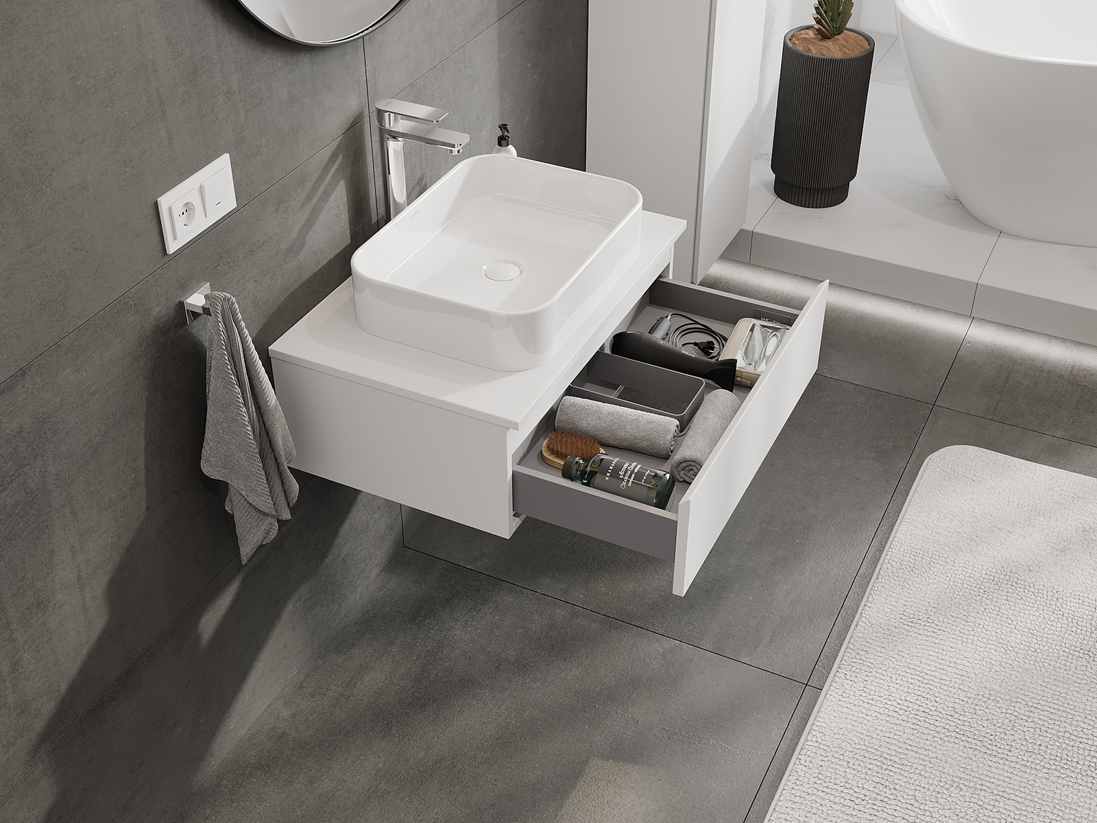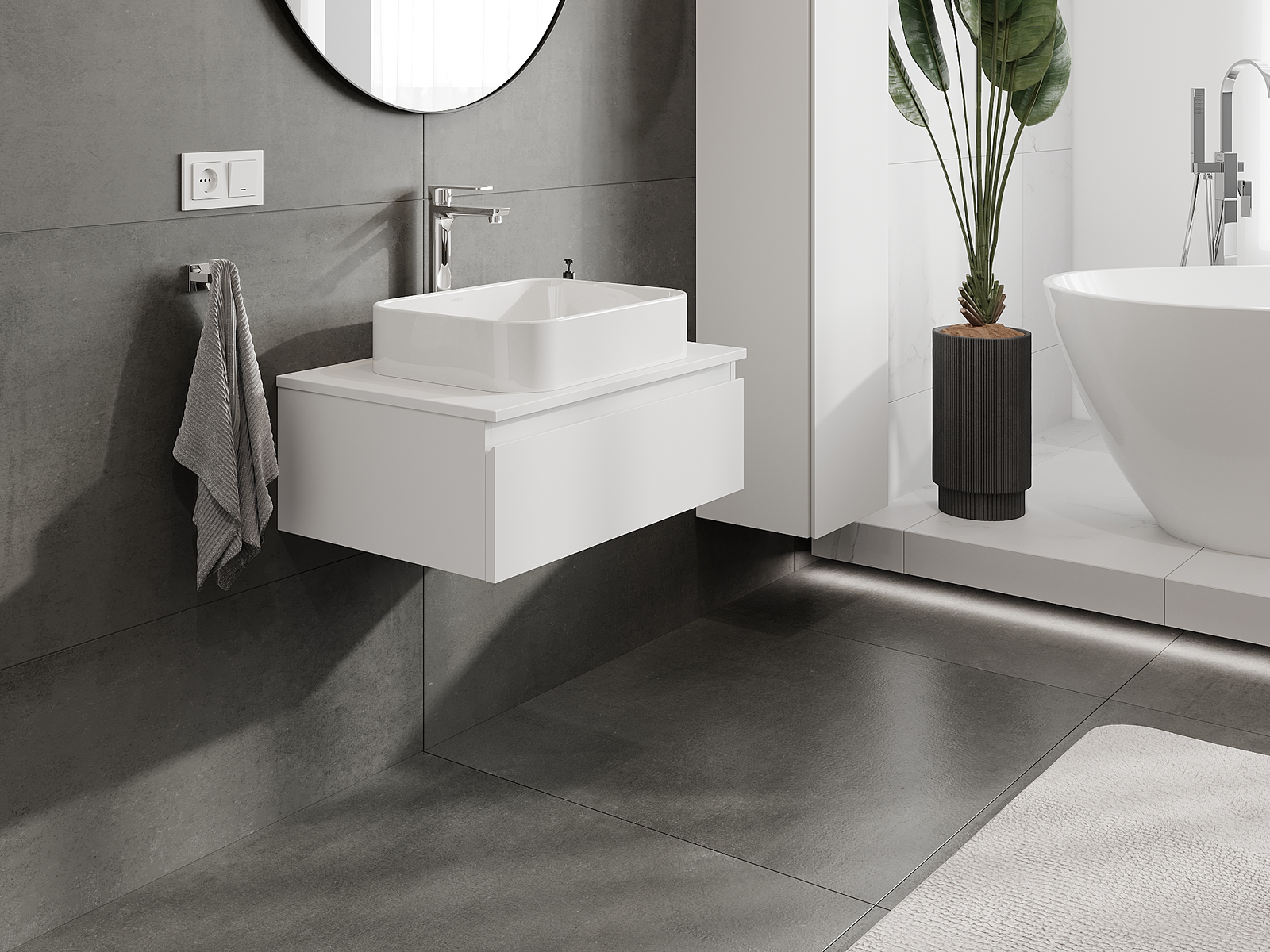 Zaradi trdnih materialov, natančne izdelave in sodobnih tehnoloških rešitev izdelek zagotavlja udobje uporabe, odpornost proti vlagi in spremembam temperature, pa tudi eleganten videz, ki se prilega različnim slogom kopalnic.