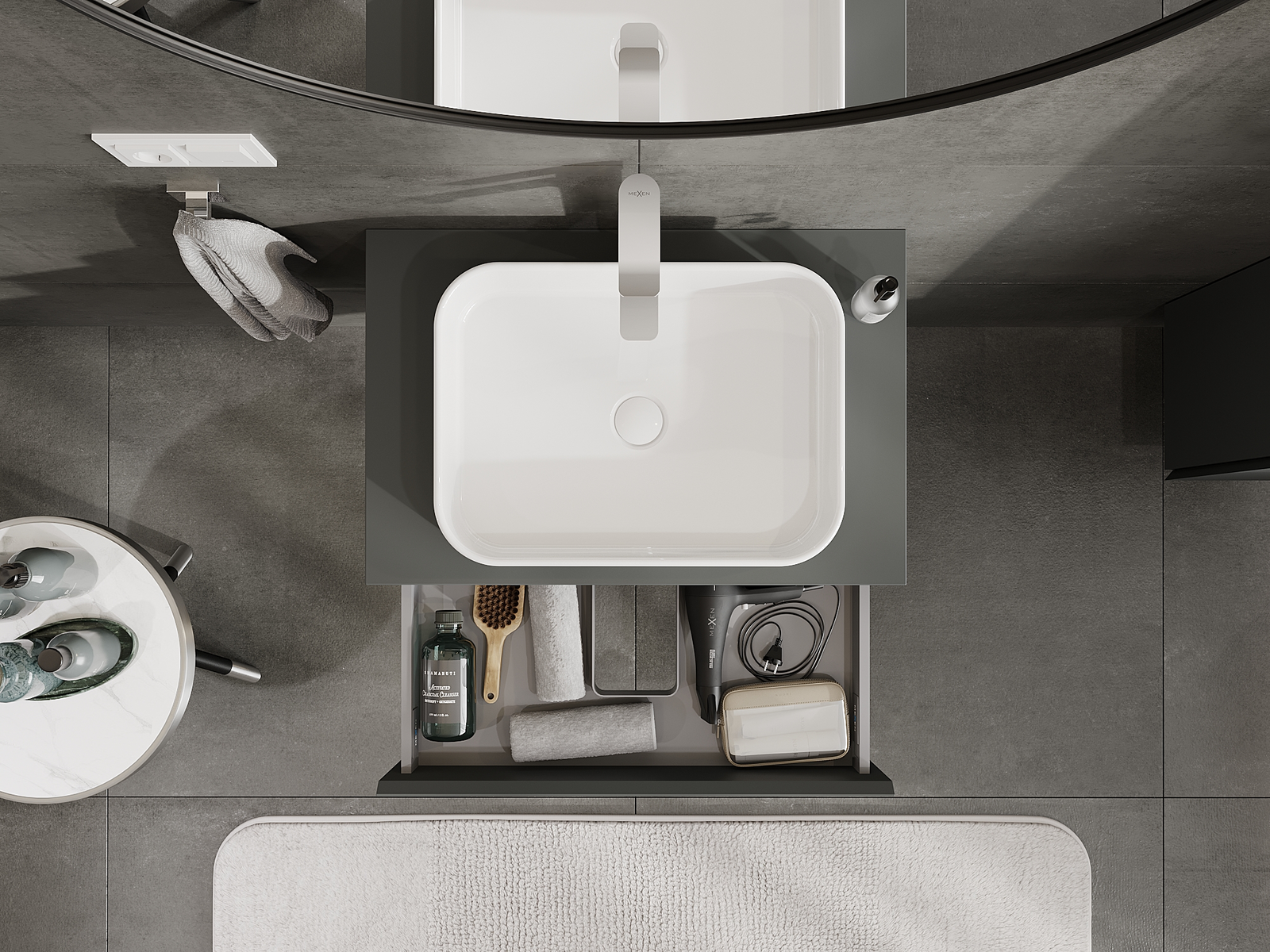 Mexen Orio kopalniška omarica pod umivalnikom 70 cm, 1 predal, grafitna mat - 91A10-07023-1-BF66