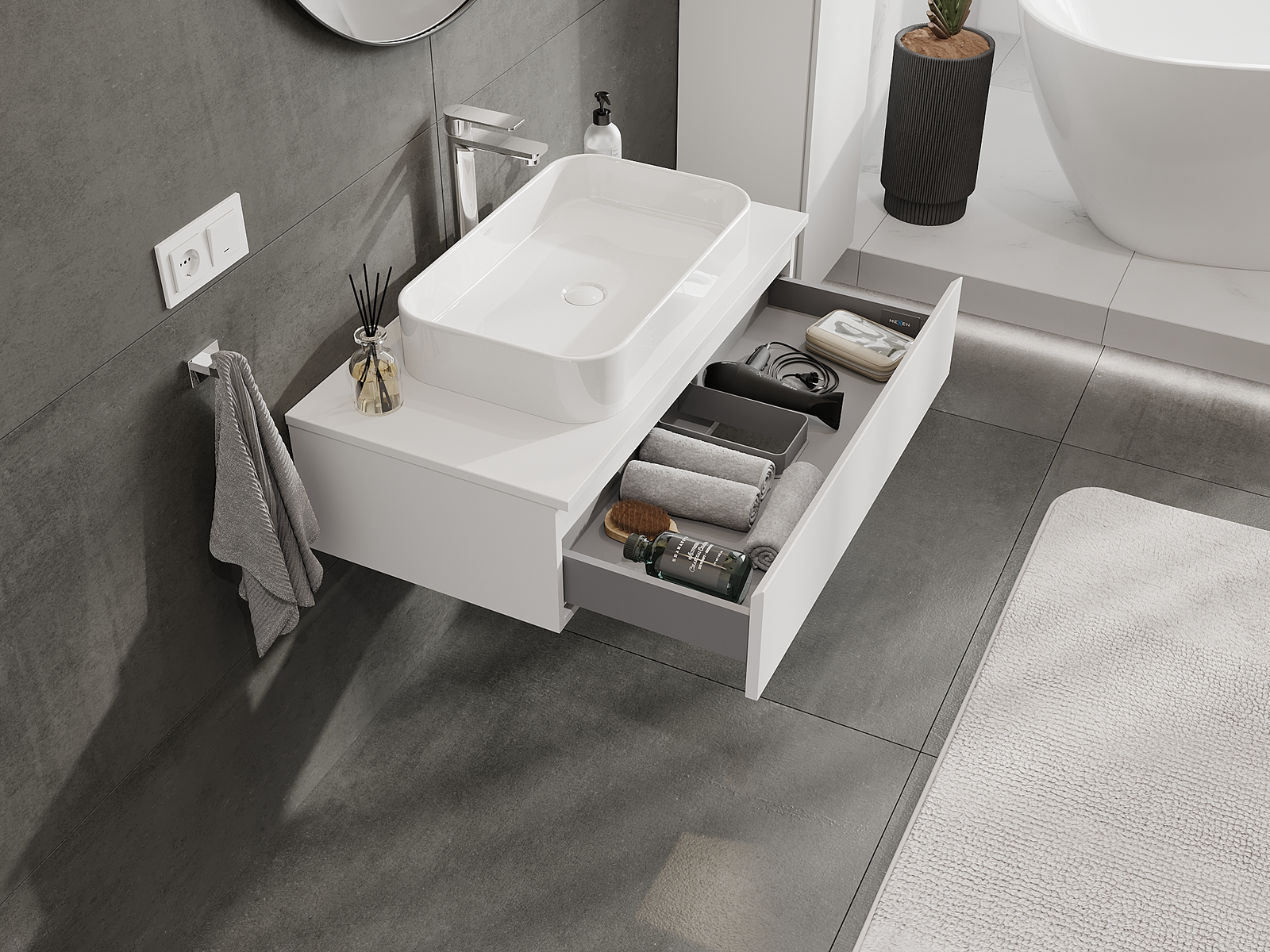 Zaradi trdnih materialov, natančne izdelave in sodobnih tehnoloških rešitev izdelek zagotavlja udobje uporabe, odpornost proti vlagi in spremembam temperature, pa tudi eleganten videz, ki se prilega različnim slogom kopalnic.