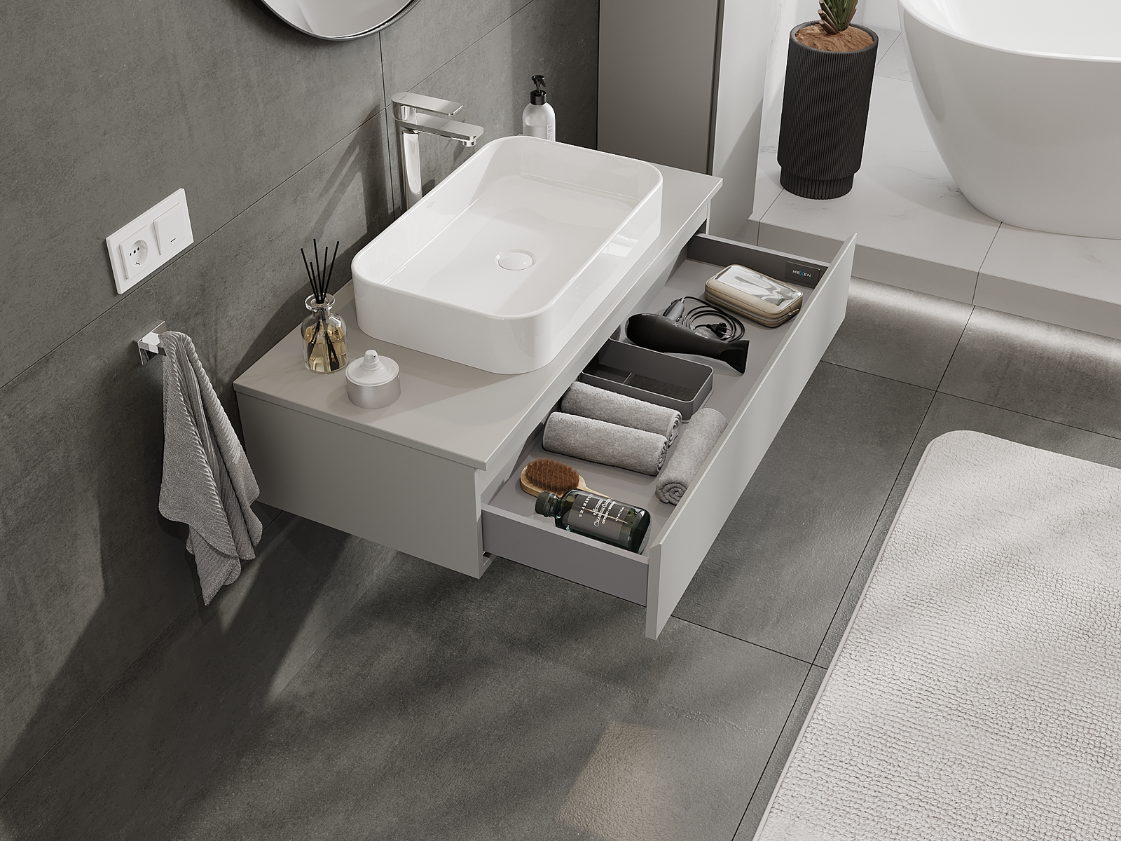 Zaradi trdnih materialov, natančne izdelave in sodobnih tehnoloških rešitev izdelek zagotavlja udobje uporabe, odpornost proti vlagi in spremembam temperature, pa tudi eleganten videz, ki se prilega različnim slogom kopalnic.