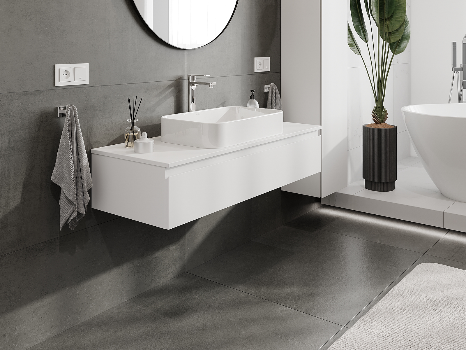 Zaradi trdnih materialov, natančne izdelave in sodobnih tehnoloških rešitev izdelek zagotavlja udobje uporabe, odpornost proti vlagi in spremembam temperature, pa tudi eleganten videz, ki se prilega različnim slogom kopalnic.