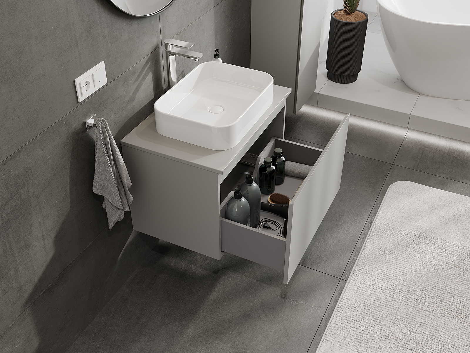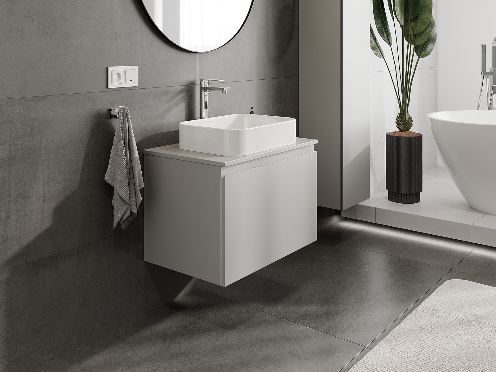 Zaradi trdnih materialov, natančne izdelave in sodobnih tehnoloških rešitev izdelek zagotavlja udobje uporabe, odpornost proti vlagi in spremembam temperature, pa tudi eleganten videz, ki se prilega različnim slogom kopalnic.