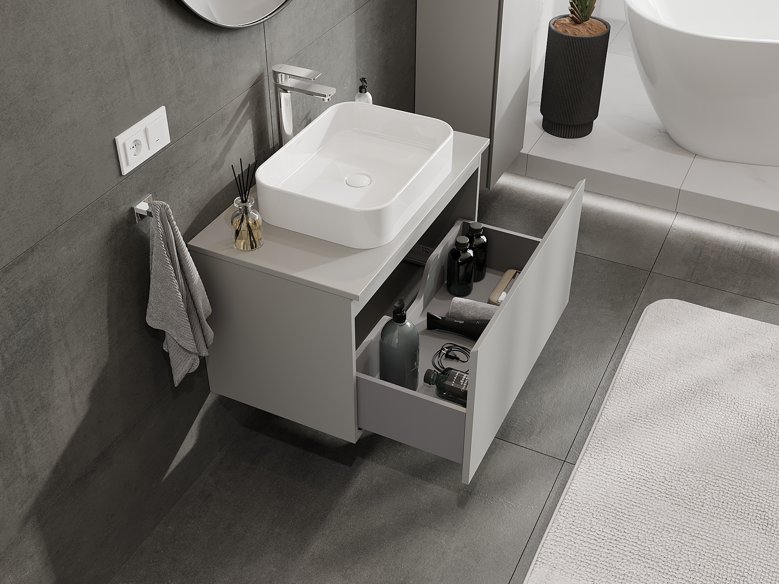 Zaradi trdnih materialov, natančne izdelave in sodobnih tehnoloških rešitev izdelek zagotavlja udobje uporabe, odpornost proti vlagi in spremembam temperature, pa tudi eleganten videz, ki se prilega različnim slogom kopalnic.