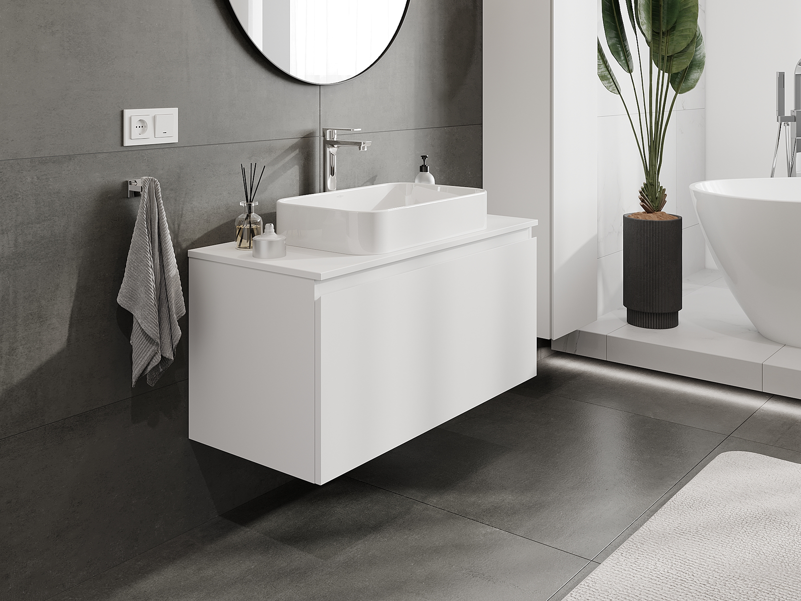 Mexen Orio kopalniški omarica pod umivalnikom 100 cm, 1 predal, mat bela - 91A10-10047-1-BF01