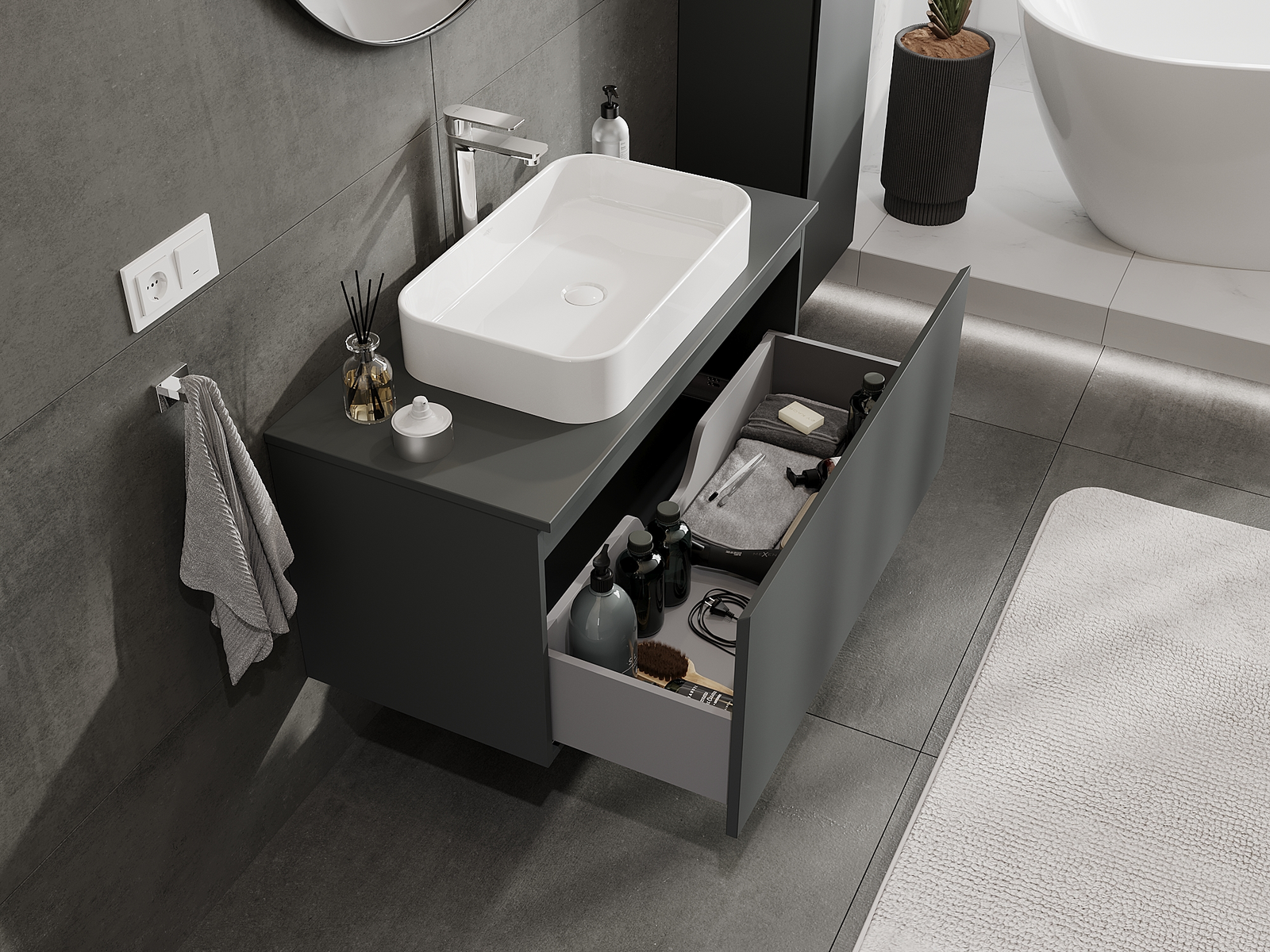 Zaradi trdnih materialov, natančne izdelave in sodobnih tehnoloških rešitev izdelek zagotavlja udobje uporabe, odpornost proti vlagi in spremembam temperature, pa tudi eleganten videz, ki se prilega različnim slogom kopalnic.