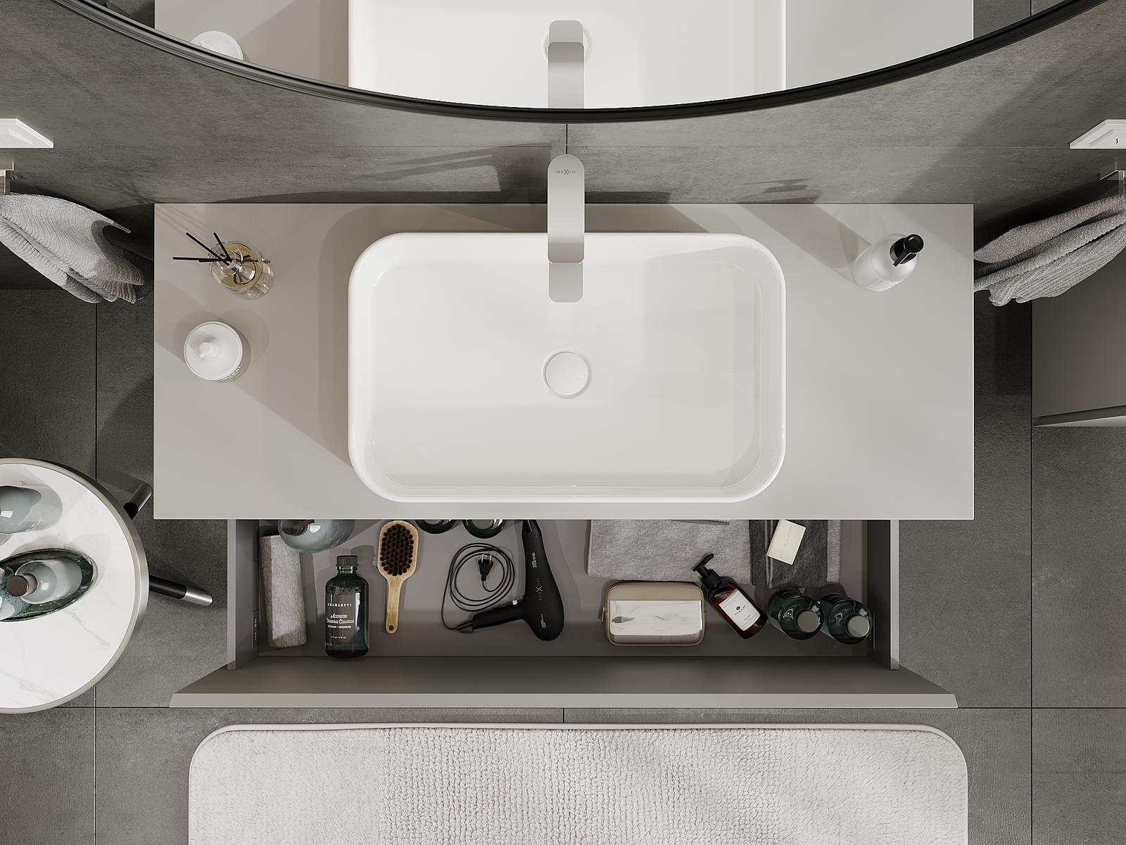 Mexen Orio kopalniška omarica pod umivalnikom 120 cm, 1 predal, siva mat - 91A10-12047-1-BF62