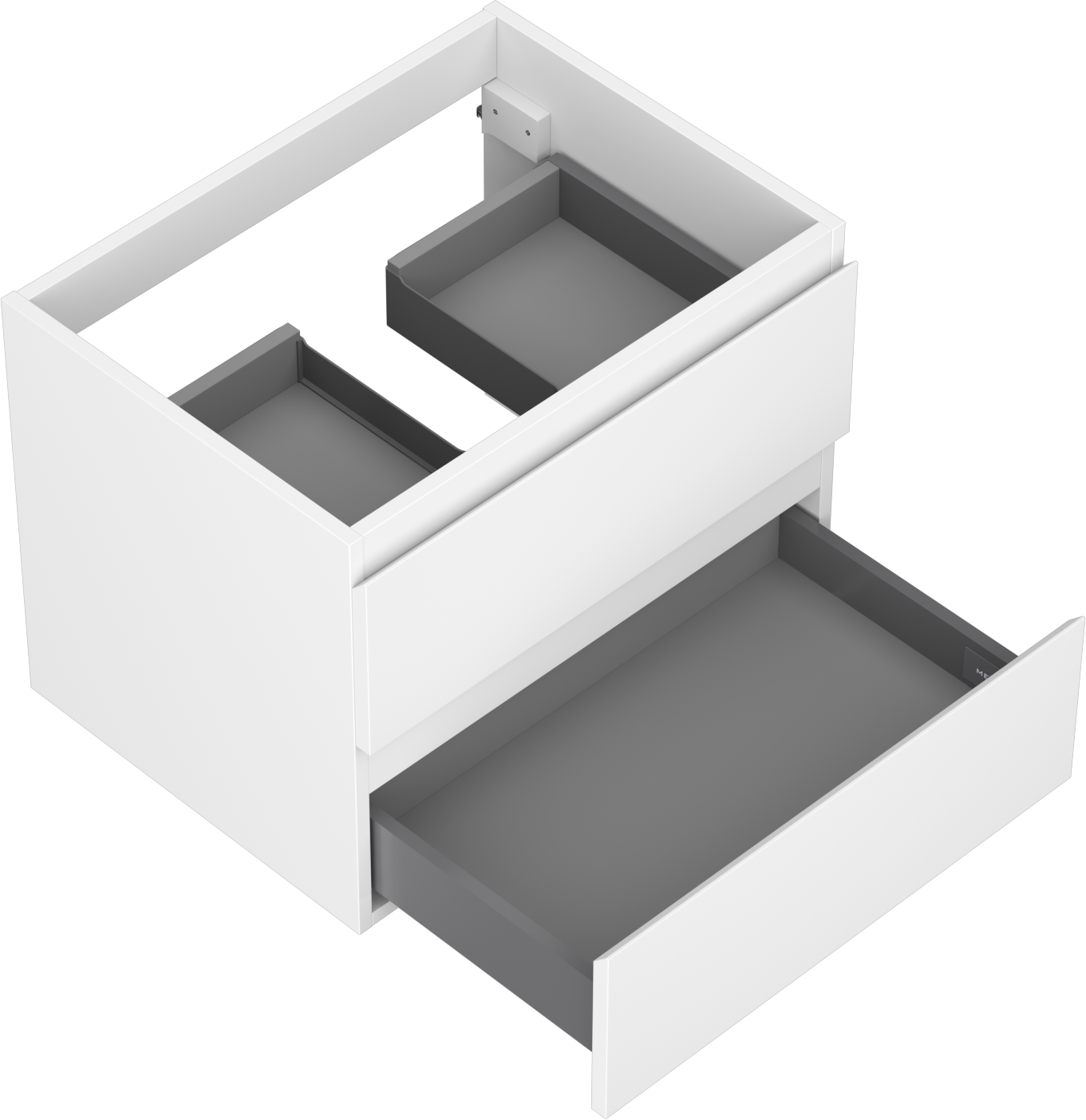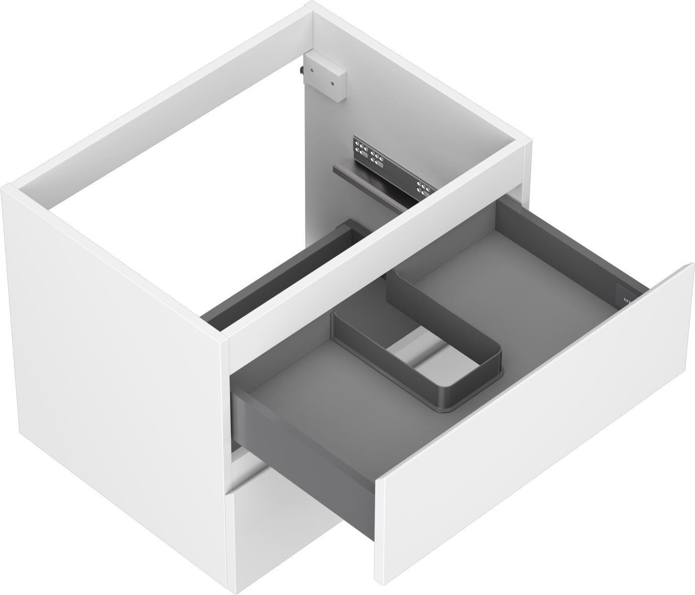 Izrez v predalu je zasnovan tako, da sprejme sifon, ki je nujen v umivalniških instalacijah. S tem je mogoče pohištvo popolnoma funkcionalno namestiti, ne da bi se morali odpovedati prostoru v predalu zaradi instalacije.