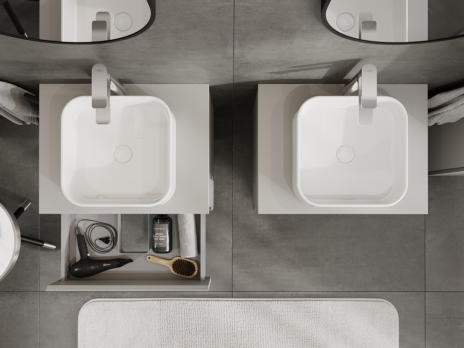 Mexen Orio kopalniška kopalniška omara 60 cm, 2 predala, siva mat - 91A10-06047-2-BFF62