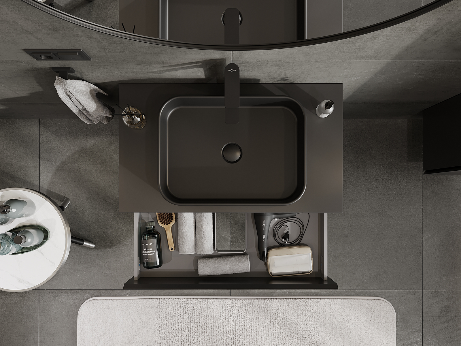Mexen Orio kopalniška omarica pod umivalnikom 80 cm, 2 predala, črna mat - 91A10-08047-2-BFF71