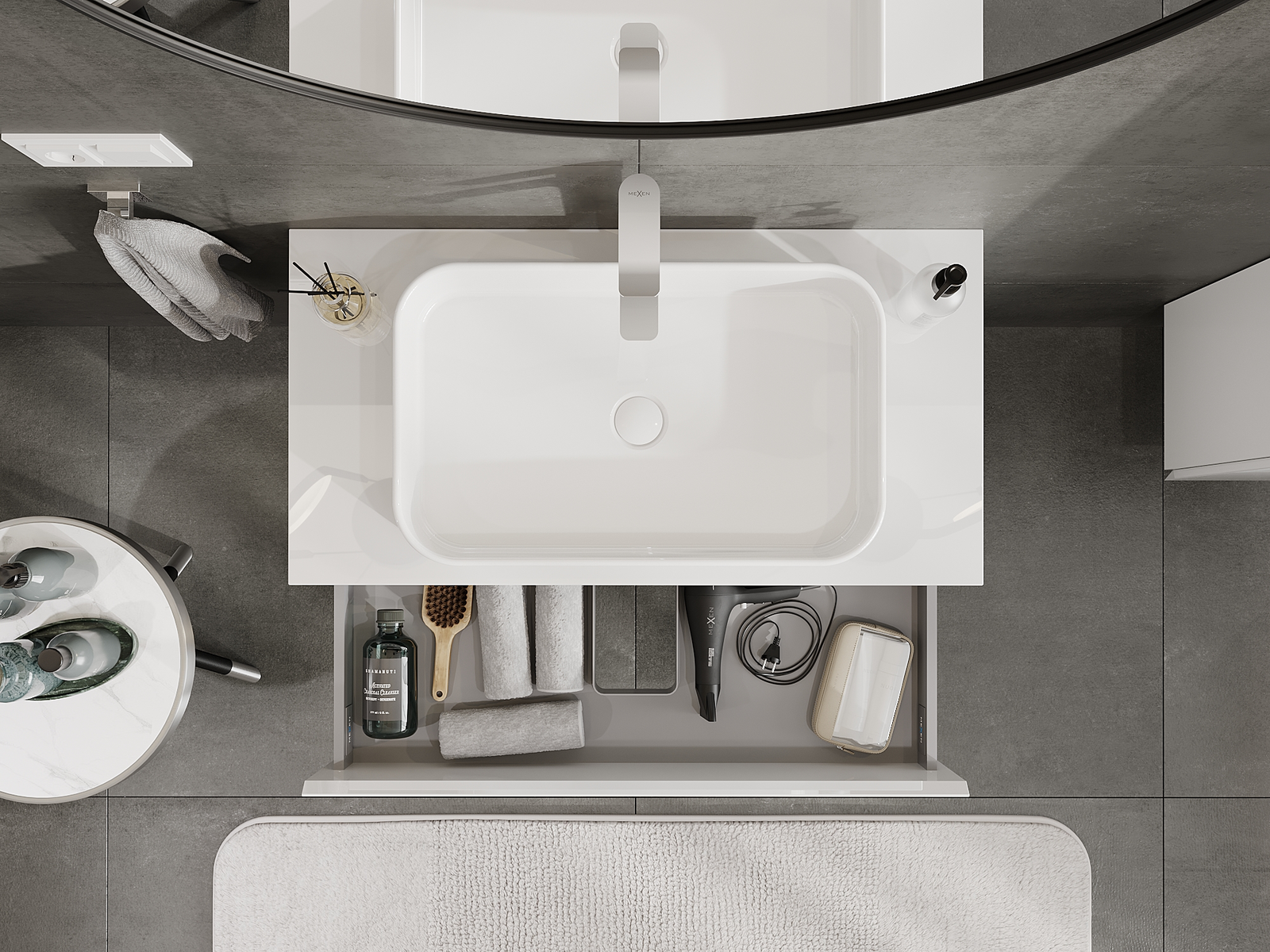 Mexen Orio kopalniška omara za umivalnik 90 cm, 2 predala, bel sijaj - 91A10-09047-2-BFF00