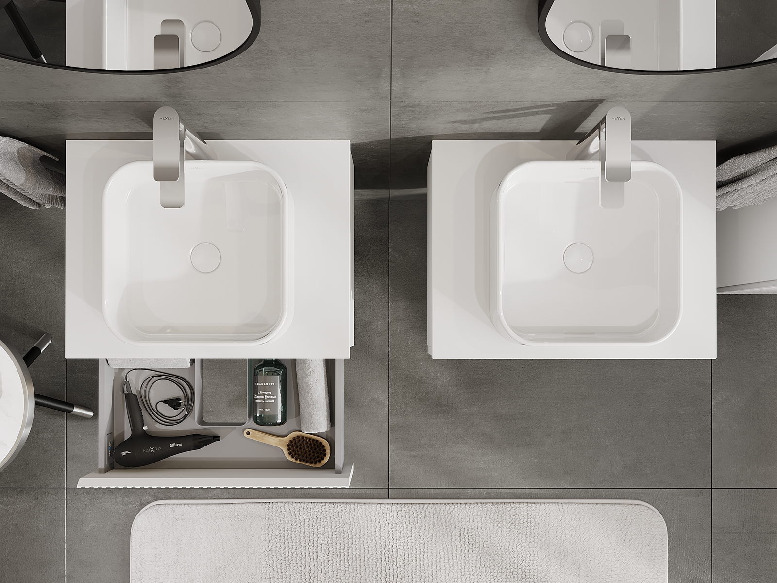 Izrez v predalu je zasnovan tako, da sprejme sifon, ki je nujen v umivalniških instalacijah. S tem je mogoče pohištvo popolnoma funkcionalno namestiti, ne da bi se morali odpovedati prostoru v predalu zaradi instalacije.
