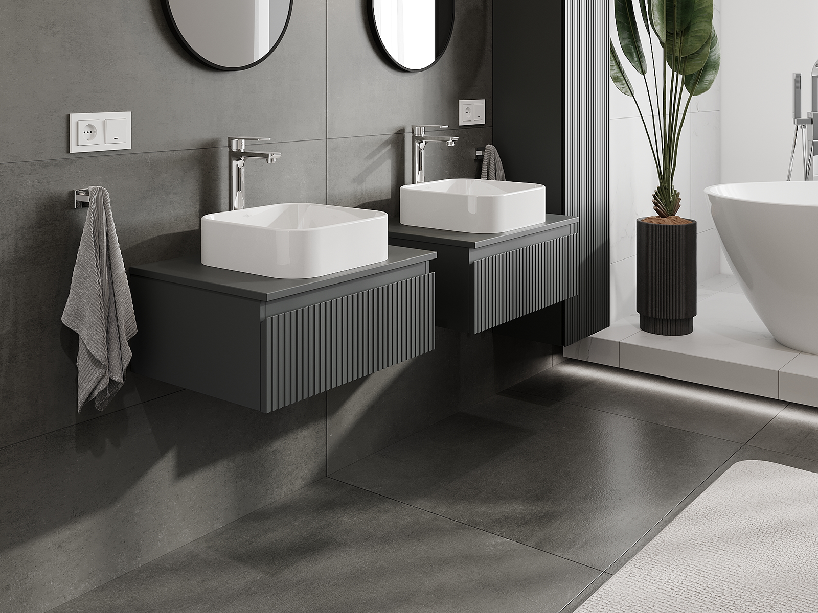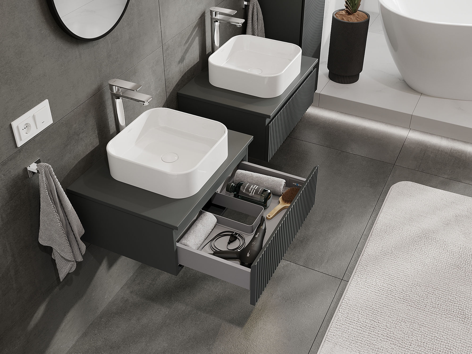 Naše modularno pohištvo za kopalnice je mogoče združevati v različnih barvnih konfiguracijah, kar omogoča popolno personalizacijo. Možno je izbrati tako videz kot funkcije posameznih elementov, kar omogoča prilagoditev pohištva vašim slogovnim in uporabniškim preferencam.