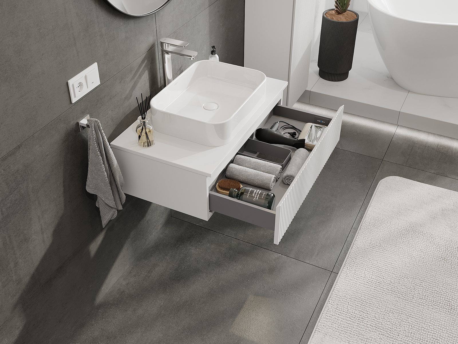 Zaradi trdnih materialov, natančne izdelave in sodobnih tehnoloških rešitev izdelek zagotavlja udobje uporabe, odpornost proti vlagi in spremembam temperature, pa tudi eleganten videz, ki se prilega različnim slogom kopalnic.
