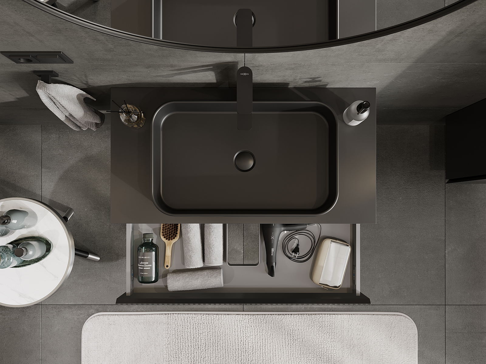 Mexen Rivel kopalniška kopalniška omarica 90 cm, 1 predal, poglobljen, črna mat - 91A20-09023-1-BF71