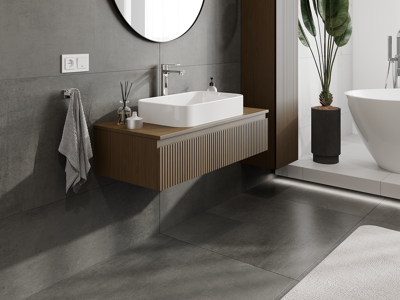 Zaradi trdnih materialov, natančne izdelave in sodobnih tehnoloških rešitev izdelek zagotavlja udobje uporabe, odpornost proti vlagi in spremembam temperature, pa tudi eleganten videz, ki se prilega različnim slogom kopalnic.