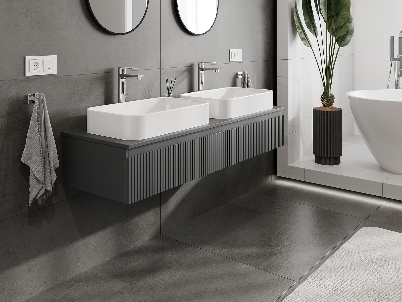 Mexen Rivel kopalniška omara za umivalnik 140 cm, 1 predal, rebrasta, grafit mat - 91A20-14023-1-BF66