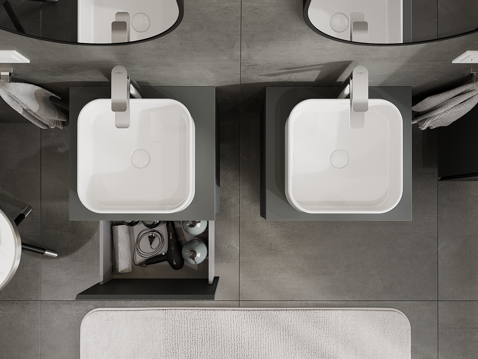 Mexen Rivel kopalniška omarica pod umivalnikom 50 cm, 1 predal, profilirana, mat grafit - 91A20-05047-1-BF66